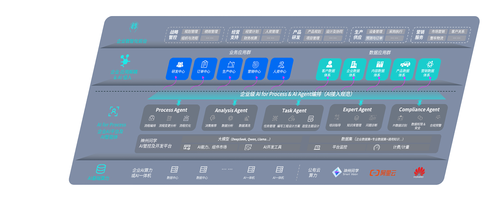 Z6尊龙问学智车解决方案是一套基于AI技术的汽车行业智能化系统,,,覆盖从底层算力到顶层AI应用的全栈方案。。方案由算力层、、模型层和应用层组成:算力层,,方案支持多种一体机配置,,,,具备云端灵活部署、、、、多云适配以及动态优化计算资源的能力;模型层,,,,Z6尊龙问学平台版提供了企业级AI应用一站式构建与管理平台,,支持基于后训练强化技术的汽车企业专属模型的训练、、、、评测和运营;应用层,,Z6尊龙问学DeepSeek版提供包括超级员工、、、、智能招采、、智能营销、、智能客服、、AI for BI等一系列解决方案,,可助力汽车行业实现数字化转型,,,,让管理更智能、、响应更敏捷。。。。